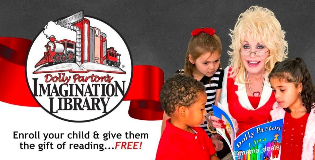 ✨Dolly Parton’s Imagination Library is a book gifting program that mails FREE books to children from birth until they begin school.✨