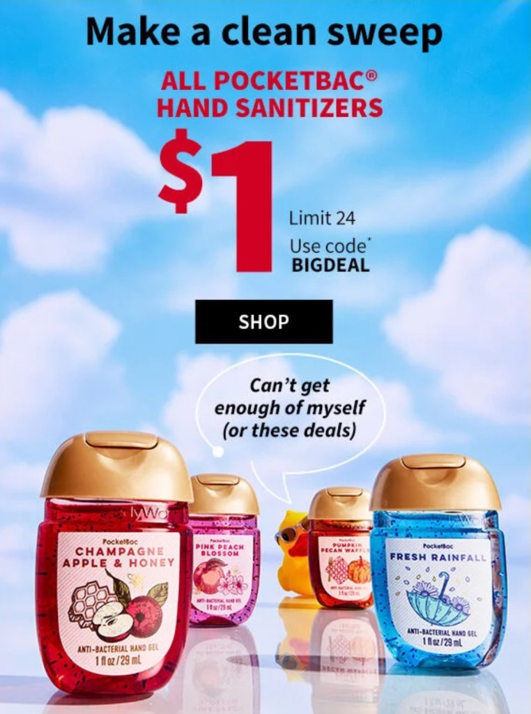 This is today only! Score $1 hand sanitizers in store or online. For online purchases use code: BIGEDEAL