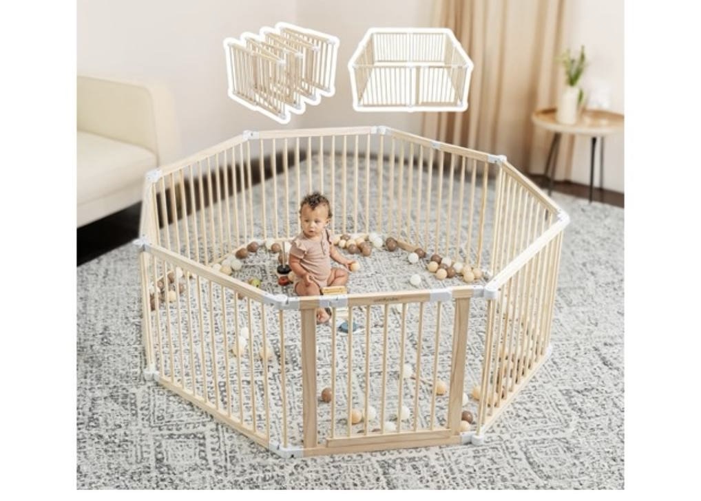 $109.99 Foldable Baby Wooden Playpen With Gate