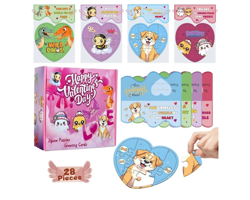 $11.39 reg $19.99 28 Pcs Valentines Day Gifts Cards for Kids Classroom, Toddlers School Heart Jigsaw Puzzle