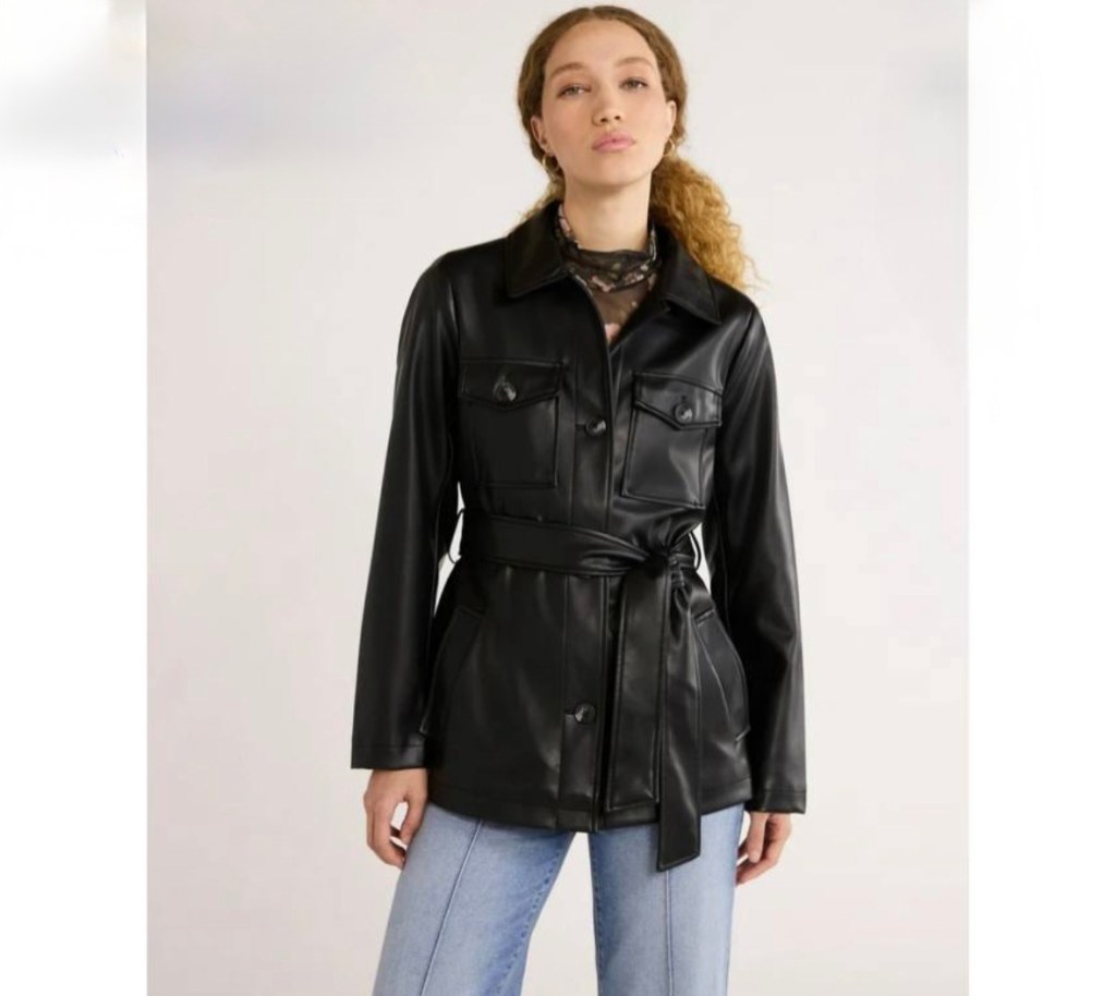and Women’s Plus Faux Leather Cropped Belted Trench, Sizes XS-3X