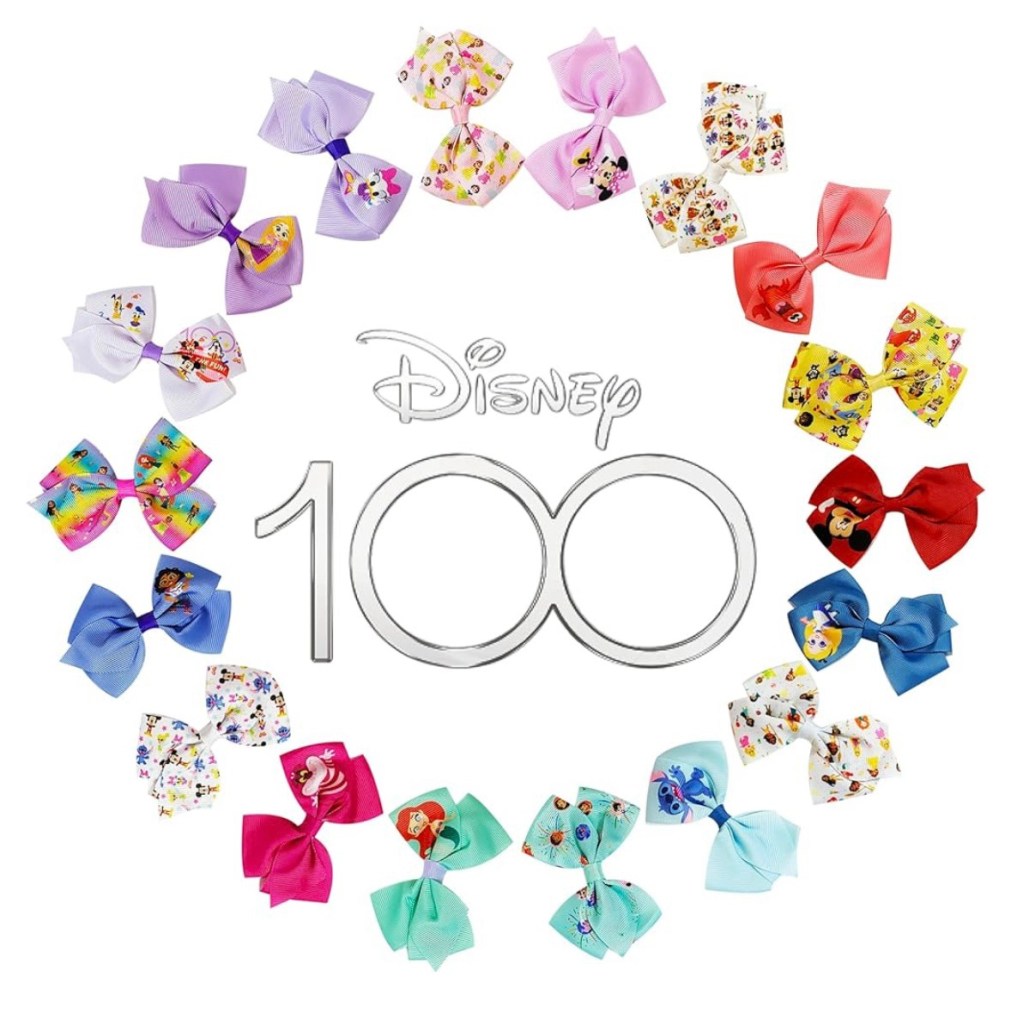 $13.49 reg $26.99 Disney 100th Anniversary Special Hair Accessory for Girls|18pc Disney Hair Bow Clips Featuring Favorite Characters with a String Bag Bow Holder