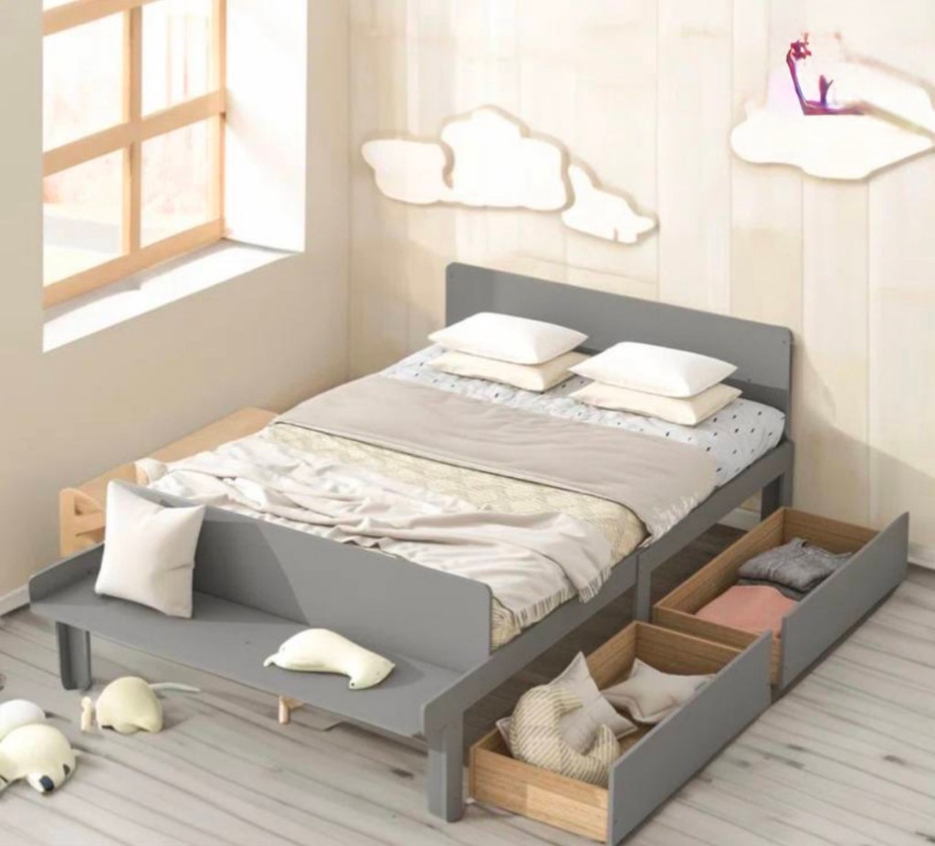 $145.99 Kids Bed with Bench and 2 Storage Drawers