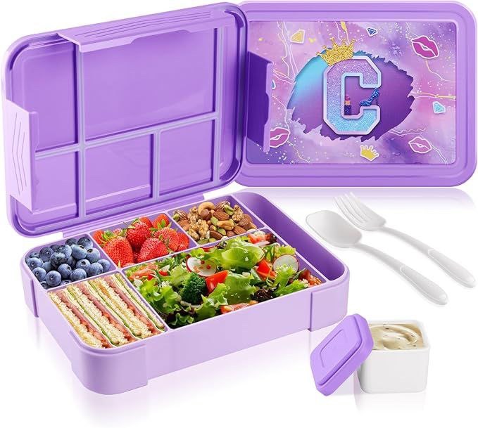 Spacious with 6 compartments – Holds a variety of foods, includes a matching fork, spoon, and sauce container.