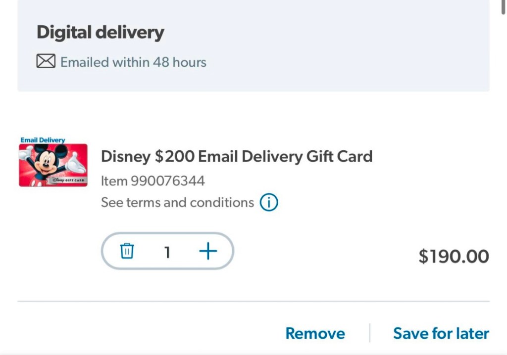 $200 Disney Email Delivered Gift for $190 at Sam’s Club