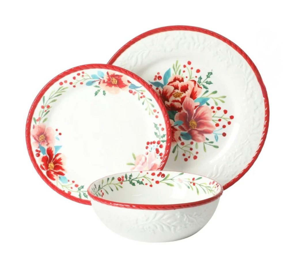 $24.13 reg $49.98 The Pioneer Woman Merry Meadow Red 12-Piece Stoneware Dinnerware Set
