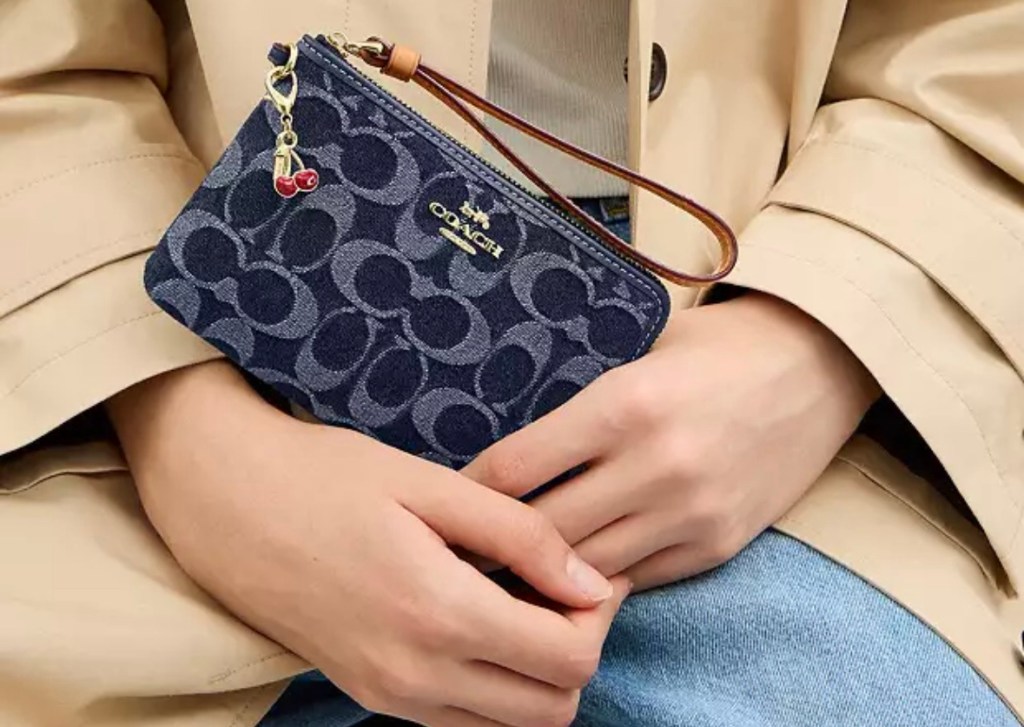 $29 Corner Zip Wristlet In Signature Denim