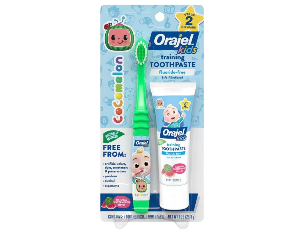 $3.97 Orajel Kids CoComelon Fluoride-Free Training Toothpaste with Brush, (Set of 2 Piece)