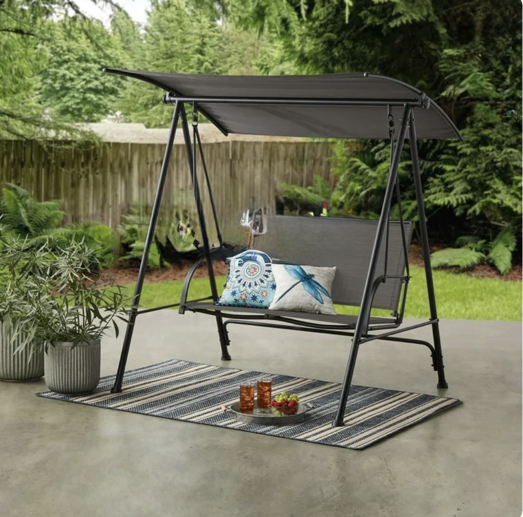 $34.88 Reg $87 Mainstays Albany Lane 2-Seat Steel Canopy Porch Swing, Black/Gray
