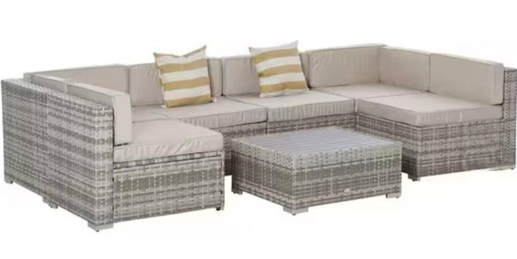 $399 Patio Life Grey 7-Pieces Steel Plastic Rattan Patio Conversation Set