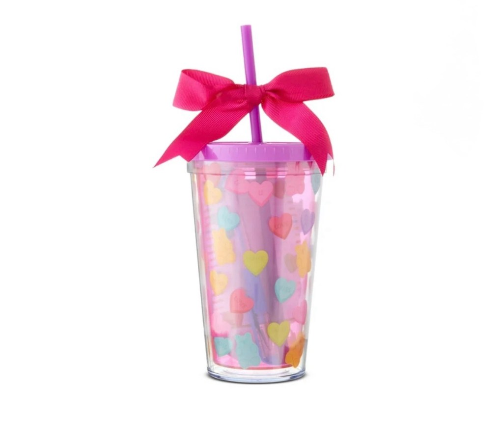 $4.98 Valentine’s Day Red Heart Tumbler Gift Set, 18 oz, by Way To Celebrate