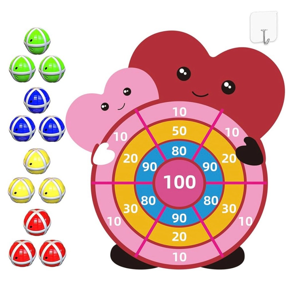 $4.99 reg $9.99Valentines Day Gifts for Kids – 30″ Valentine Dart Board with 12 Sticky Balls – Valentine Toys