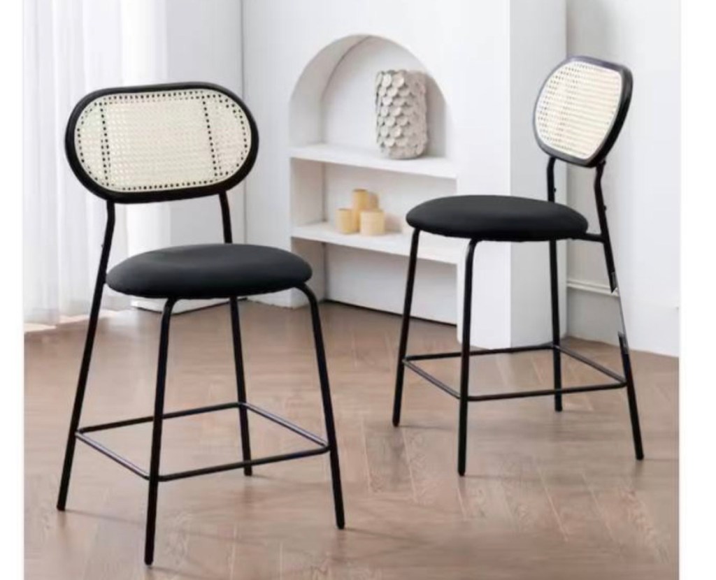 Rattan Bar Stools with Velvet Seat (set of 2)