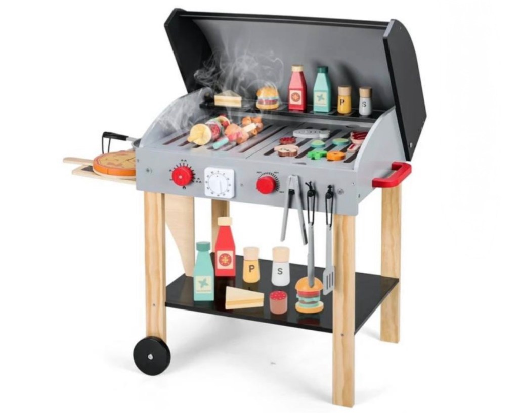 Kids BBQ Grill Playset with Timer & Pretend Play Food Toys
