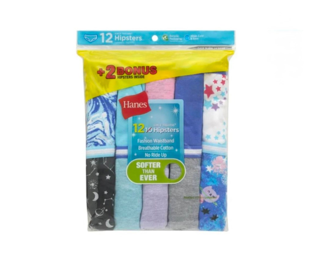 $5.98 Hanes Girls’ Sparkle Cotton Hipster, 10+2 Bonus Pack