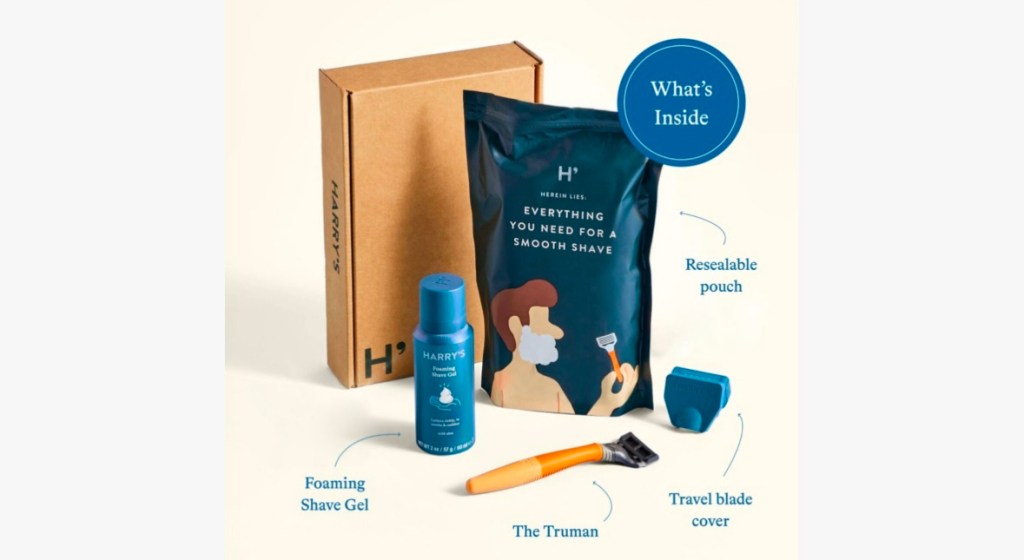 • $5 (Reg $13)A Special Offer Just for You from Harry’s!! Enjoy a weighted handle, razor, foaming shave gel, travel blade
