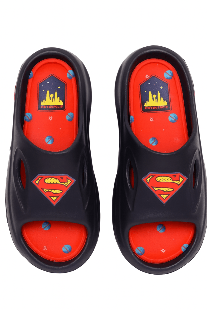 Slip into comfort and superhero style with these Ground Up slide sandals featuring a soft EVA footbed and bold Superman branding. Lightweight and easy to clean, they’re perfect for lounging, running errands, or lounging poolside. The iconic Superman emblem brings character and flair to casual wear.