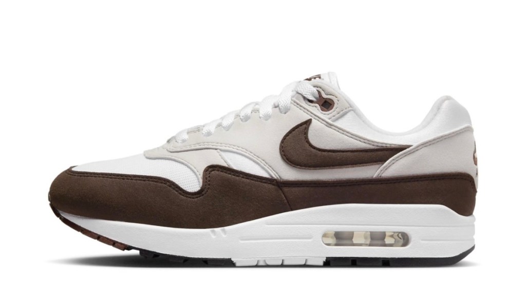 $56 Reg. $140 Nike Air Max 1 sneakers in white and dark brown