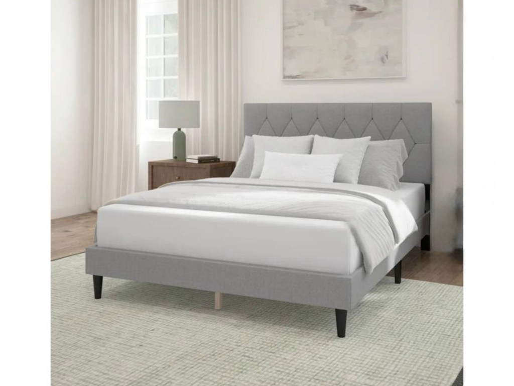 $58!! Reg. $129 Mainstays Hillside Diamond Tufted Upholstered Queen Platform Bed, Gray