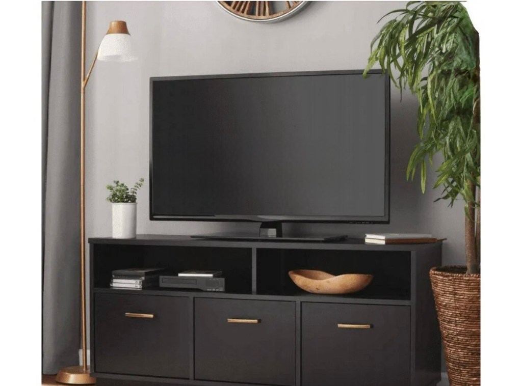 $59.00 reg $109.00 Mainstays 3-Door TV Stand Console for TVs up to 50″, Blackwood Finish