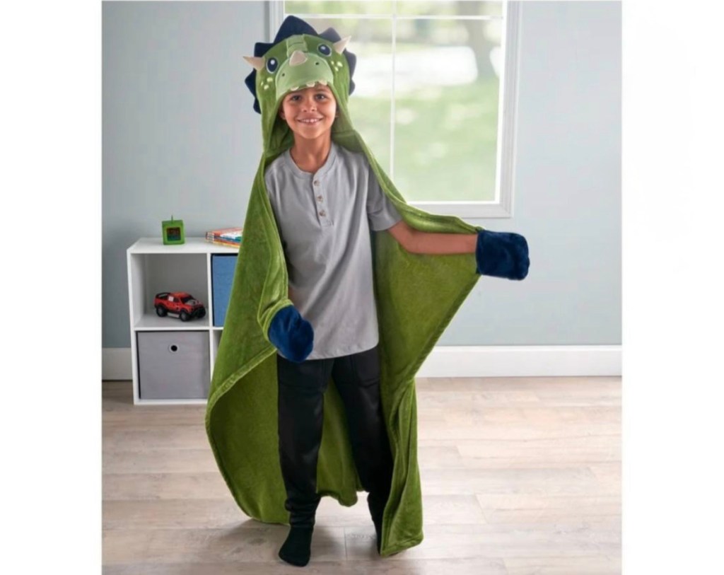 $6 🦖 Your Zone Kids Green Dinosaur Glow in the Dark Hooded Throw, 40″ x 50″