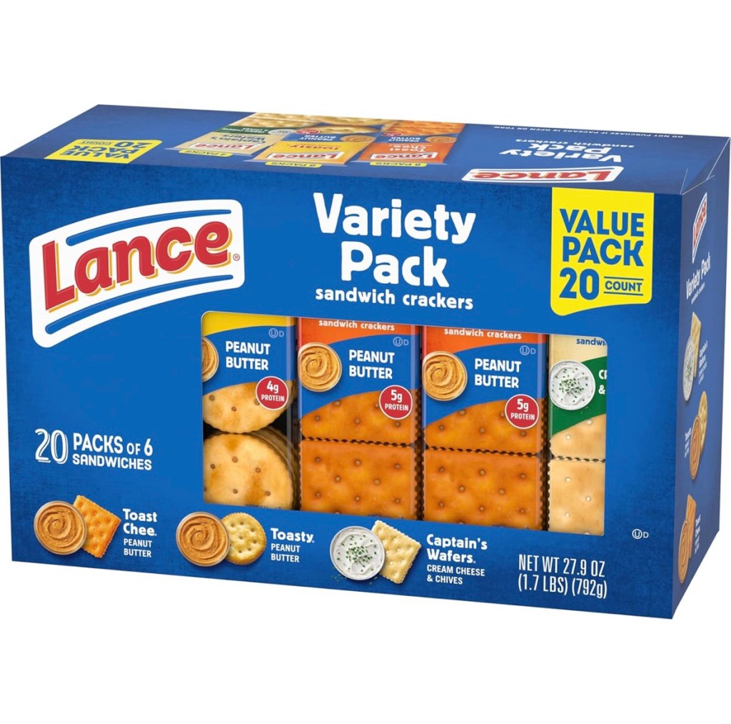 $6.15 Lance Sandwich Crackers, Variety Pack, 3 Flavors, 20 Individually Wrapped Packs, 6 Sandwiches Each