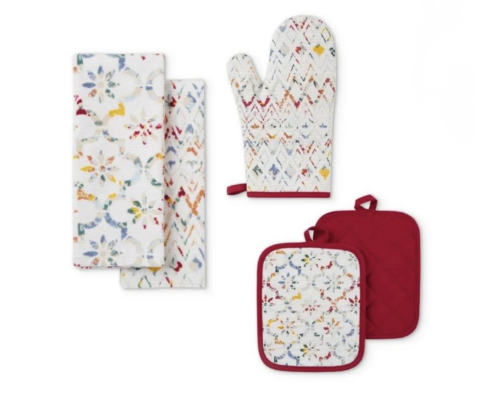 $6.78 Mainstays Ogee Tile Kitchen Towel, Pot Holder, and Oven Mitt Set, Multicolor, 15″W x 25″L, 5 Pieces