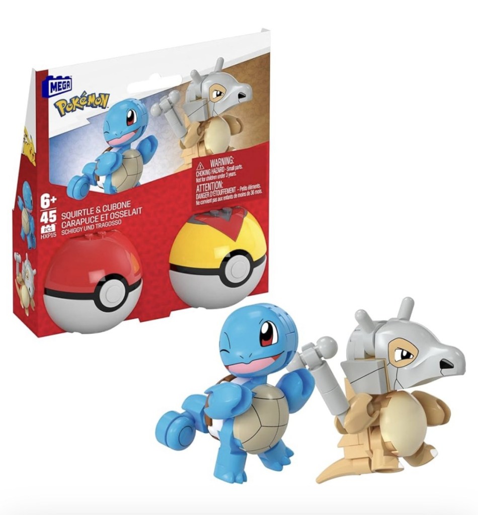 $6.85 reg $14.99 MEGA Pokémon Building Toys Set Squirtle & Cubone with 45 Pieces, 2 Poseable Characters and Poké Ball, 2 Inches Tall, for Kids