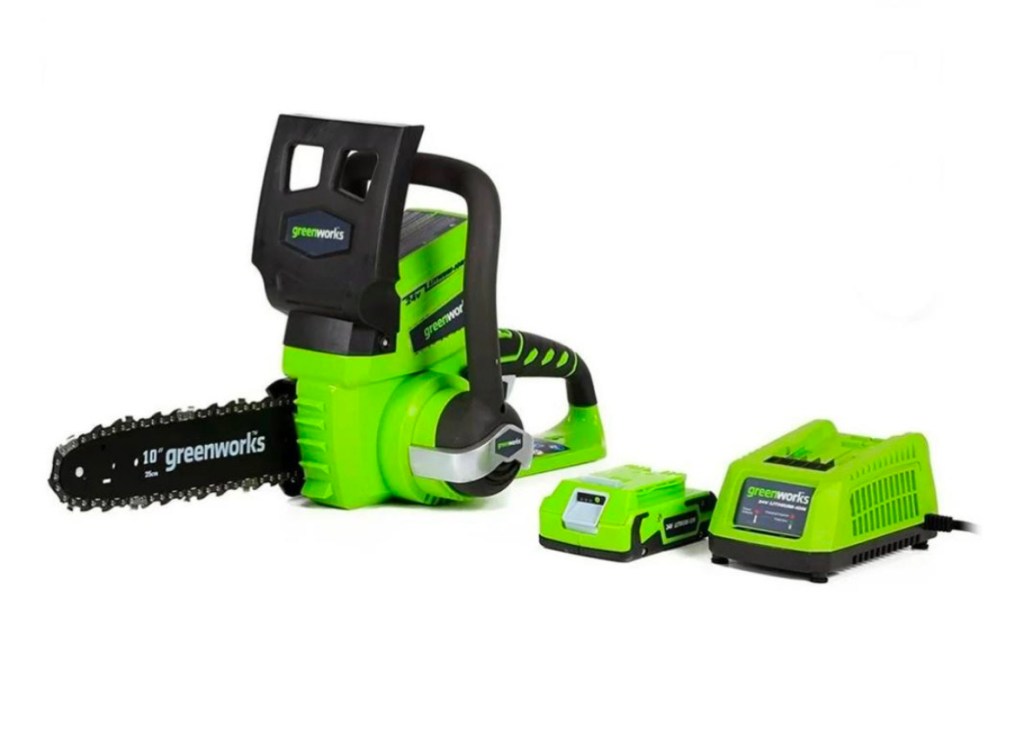 $68.00 reg $129.99 Greenworks 24V 10″ Cordless Chainsaw with 2.0 Ah Battery & Charger 20362
