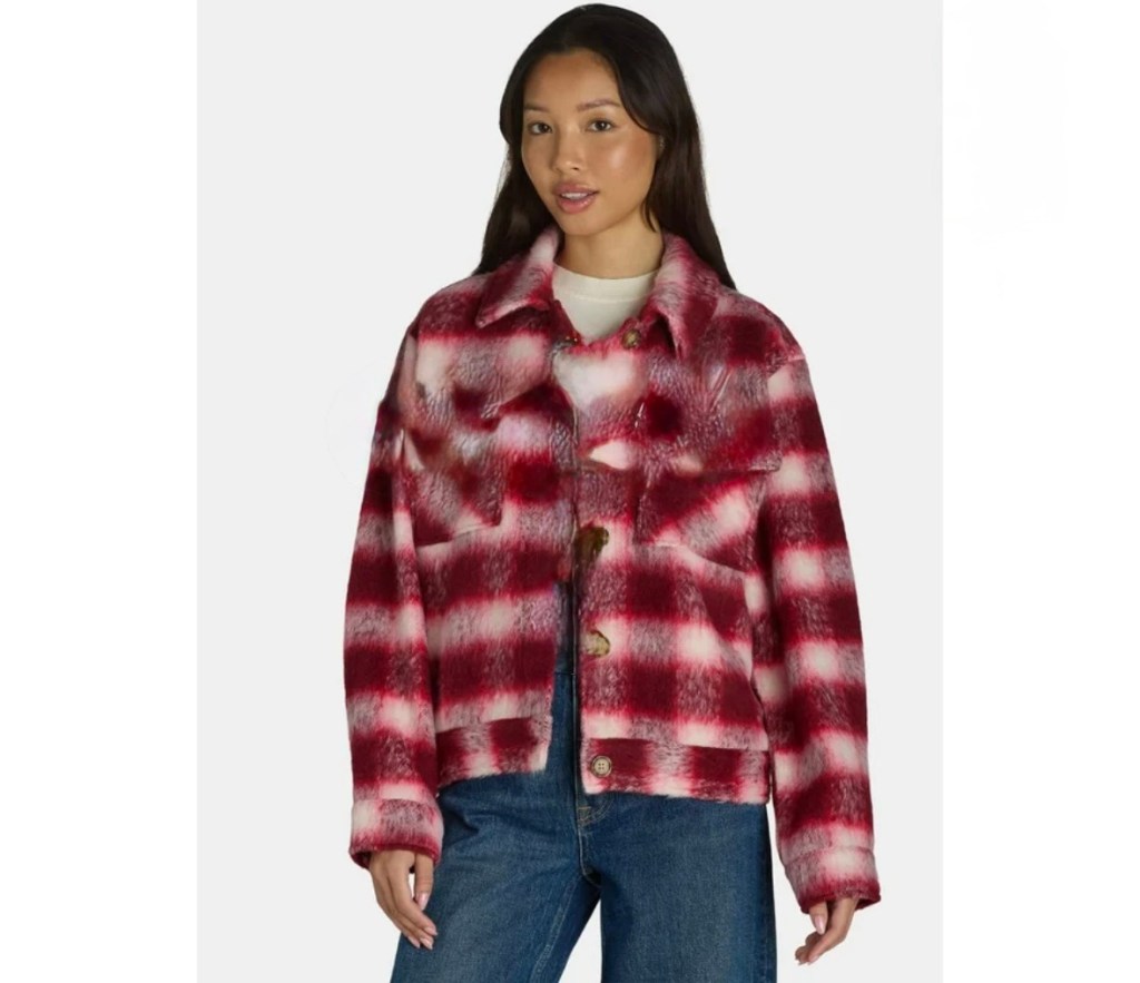 $7.49 Time and Tru Women’s Cropped Plaid Button Down Shacket, XS-XXXL