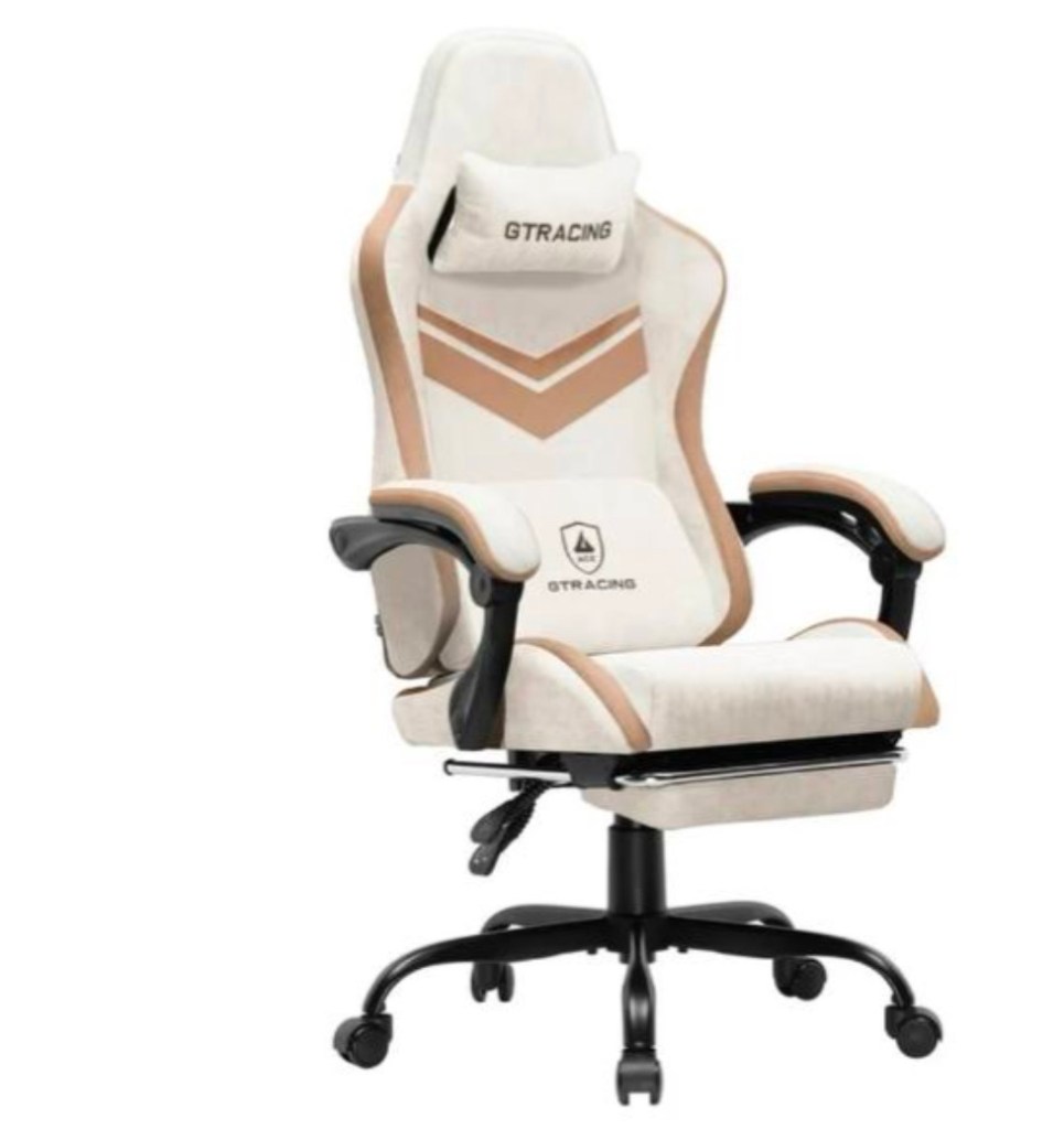 $79 Reg $139 GTRACING GTW-300 Ergonomic Adjustable Height Reclining Fabric Gaming Chair , Cream/Brown