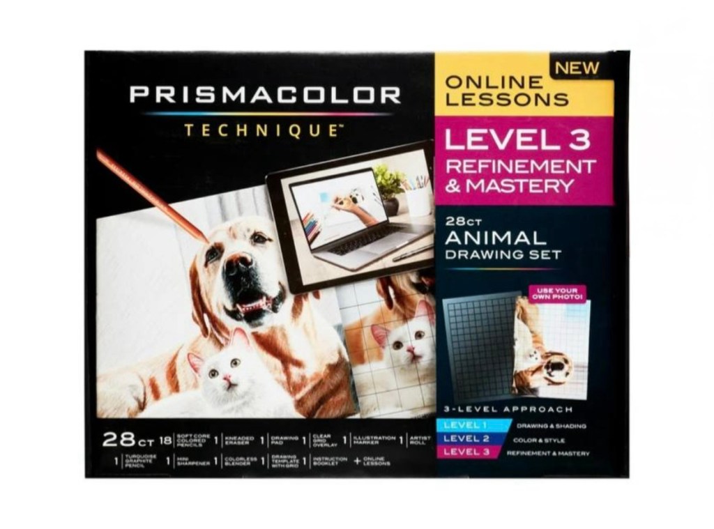 Animal Drawings Set, Level 3, How to Draw Animals with Colored Pencils, and More, Includes Artist Roll Case, Dog, Cat & Pet Lesson, 28 Ct