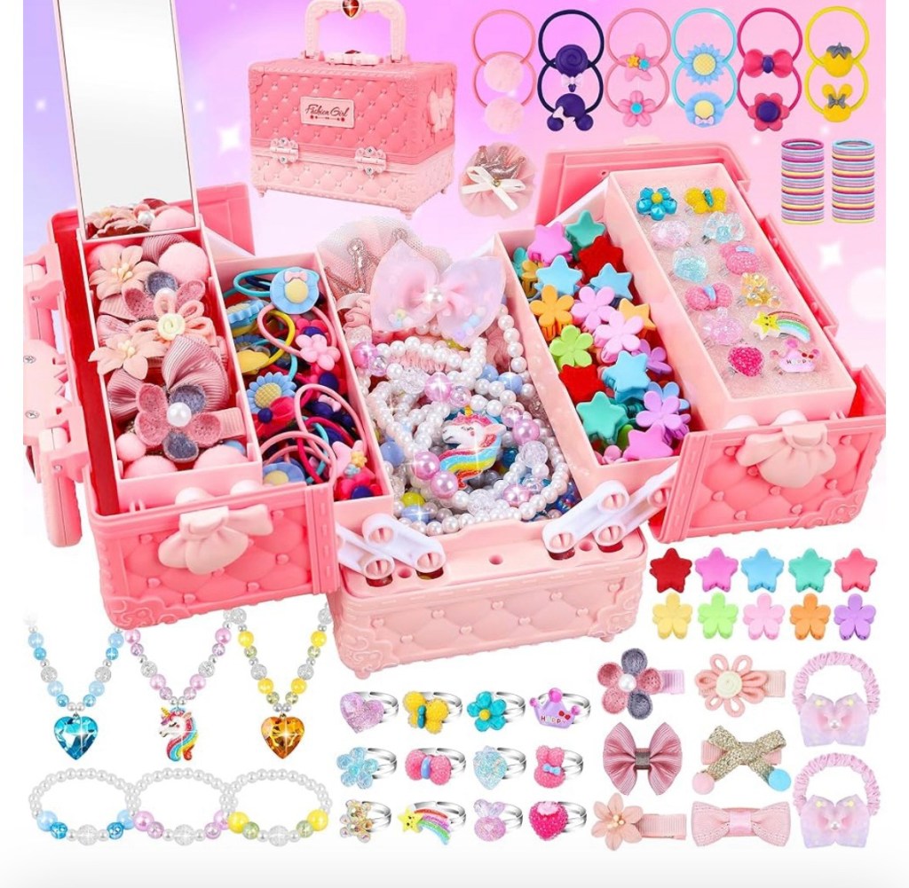 $9.99 reg $24.99 Jewelry Toys for Girls, 172Pcs Jewel Rings, Necklaces, Bracelets, Hair Ties, Hair Clips, Princess Dress Up Toys