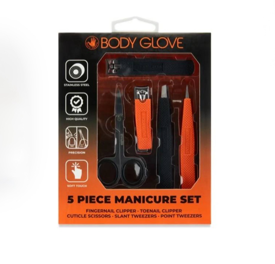 As low as $2.50 Body Glove 5-Piece Orange Manicure Set: Stainless Steel Clipper, Scissors & Tweezers for Adults