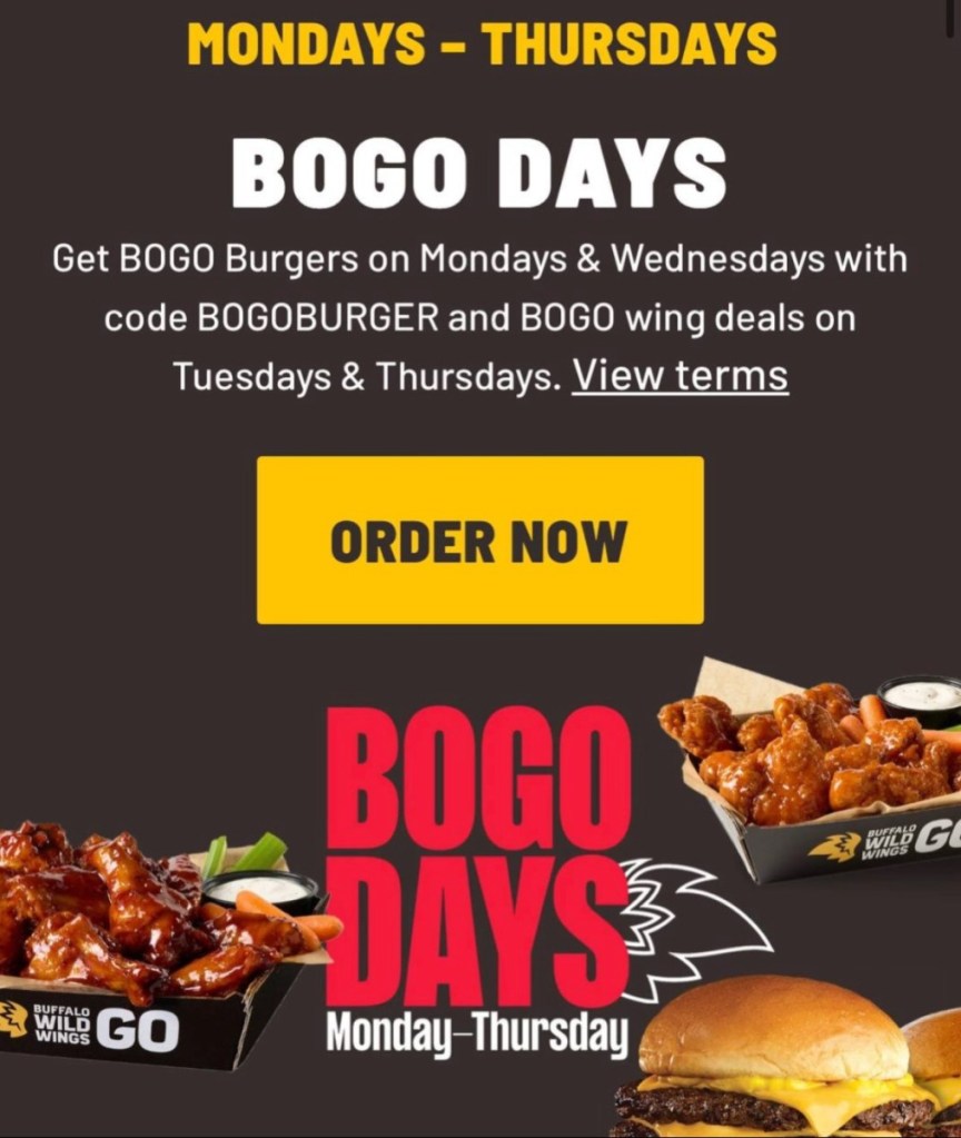 Buffalo Wild Wings BOGO Days Monday-Thursday