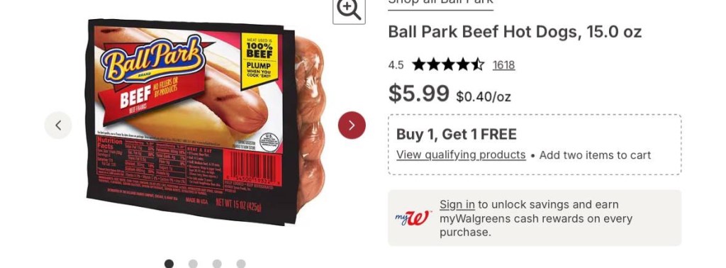 Buy 1 Get 1 Free Ball Park Beef Hot Dogs, 15.0 oz