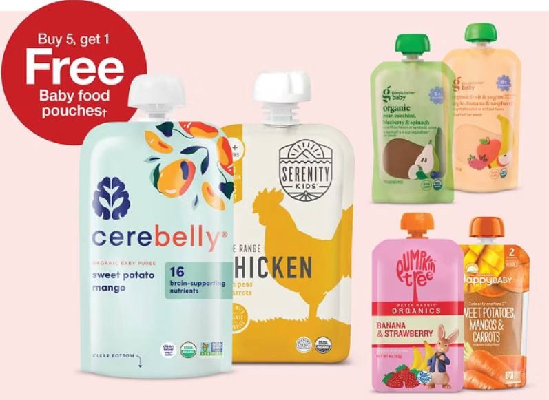 Buy 5, get 1 free on select baby food pouches