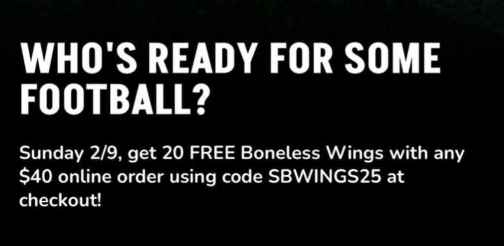 Free wings with Online Purchase $40