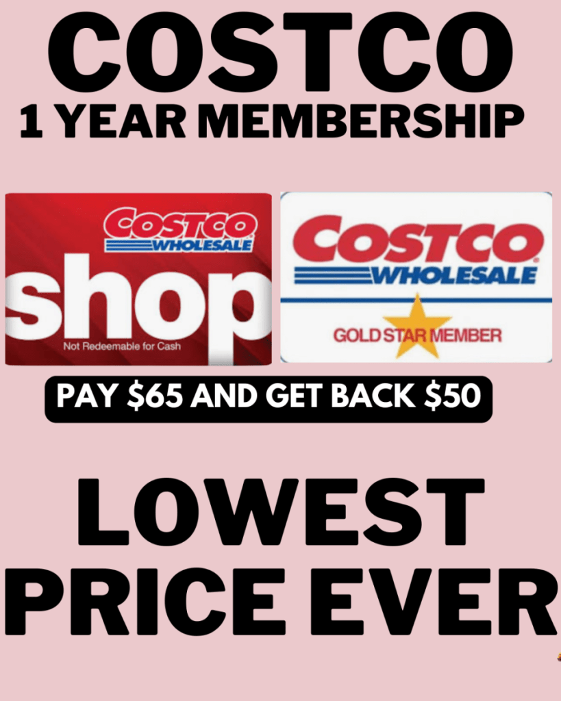 Costco Gold Star Membership with a $50 Costco Shop Card and a Costco Travel Promo Code. Pay $65 and get $50 back.