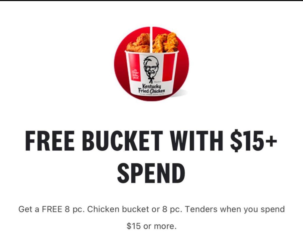 Looking for the best fast food deal this summer? KFC (Kentucky Fried Chicken) is bringing back the flavor in a big way with its new “Free Bucket On Us” promotion. Through August 24, 2025, customers can get a FREE 8-piece bucket of Original Recipe Chicken or 8-piece Tenders when they spend $15 or more on a single order through the official KFC app or KFC.com. This limited-time offer is available exclusively to KFC Rewards members, so be sure to sign up (it’s free!) to unlock the deal. The $15 minimum must be met before taxes, tips, or delivery fees, and the promotion is only valid at participating U.S. locations.