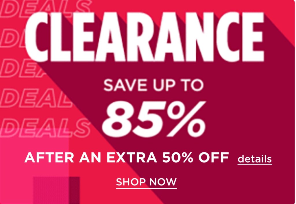 Save 85% off clearance after extra 50% off. Also save an additional 15% off on home items.