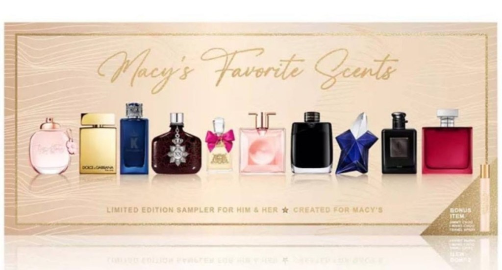 Only $24 11-Pc. Macy’s Favorite Scents Fragrance Sampler with Travel Spray For Him & Her, Exclusively at Macy’s