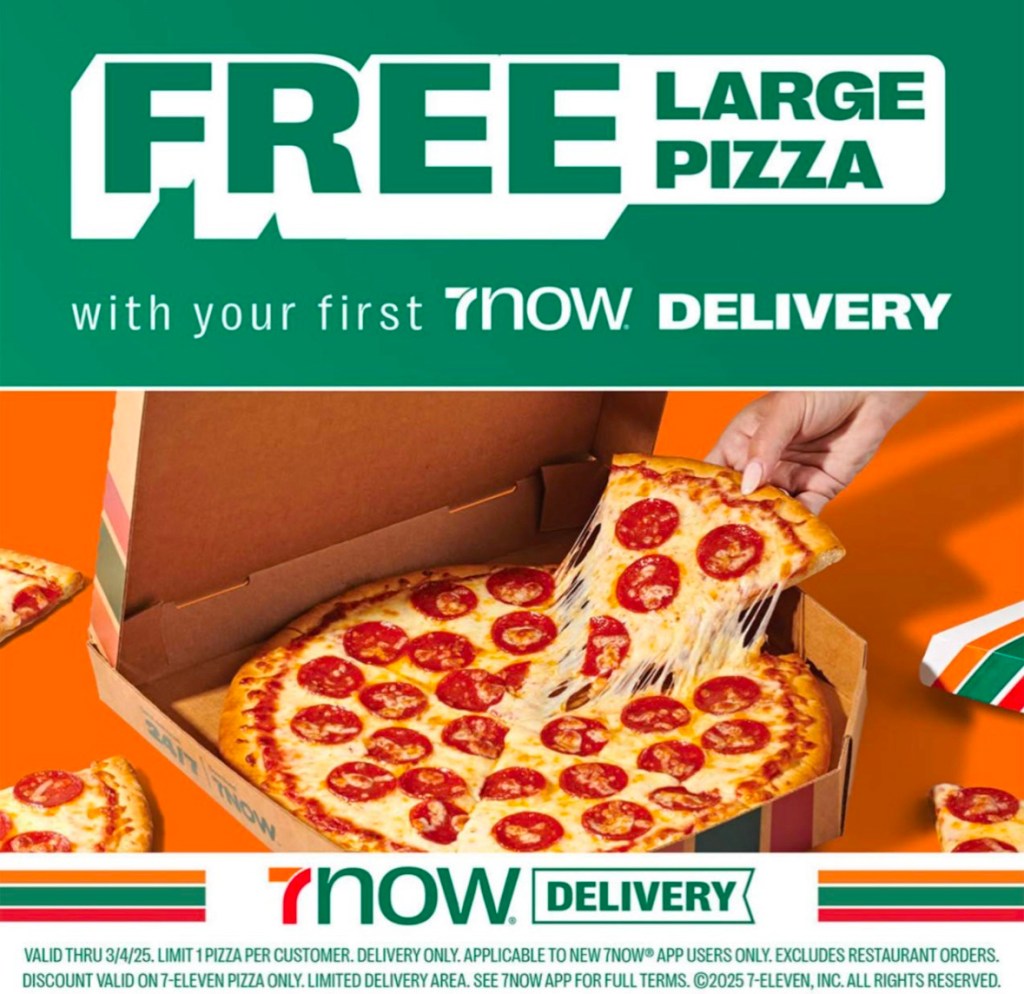Place your first delivery on the 7NOW App and receive a Free Large Pizza 🍕