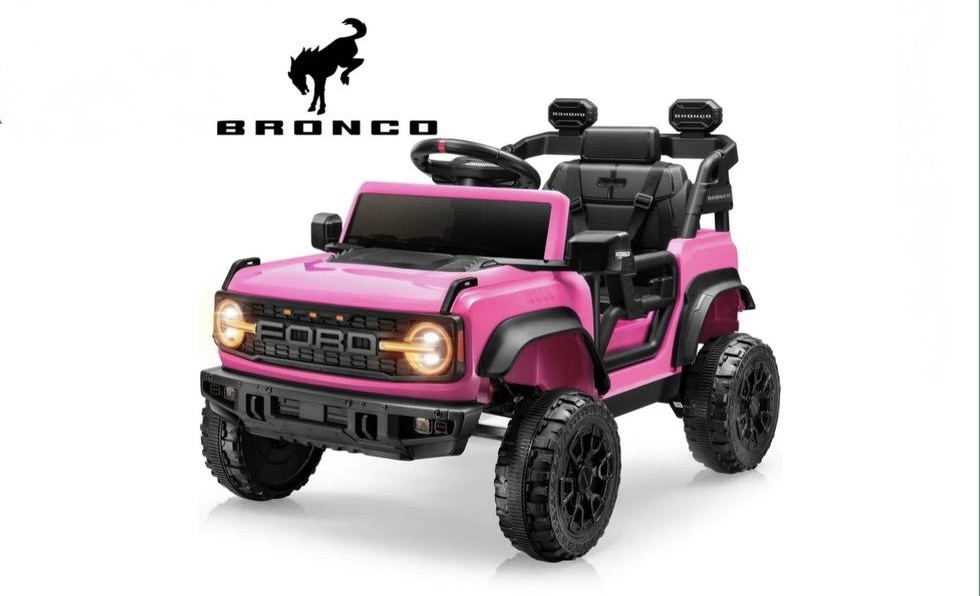 $169.99 iYofe Ford Bronco Raptor Electric Ride on Toy Car for Toddler Kids, 12V Battery Powered Ride on Cars w/Remote Control, Bluetooth & Lights, Pink
