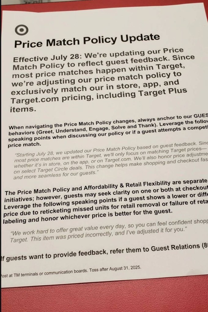 Starting July 28, 2025, Target will be updating its price match policy, significantly narrowing the list of eligible competitors. Under the new guidelines, Target will only match prices from Target.com.