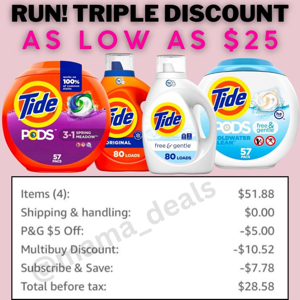 Final price BEFORE TAX can range from $25 to $48! Tide Deal